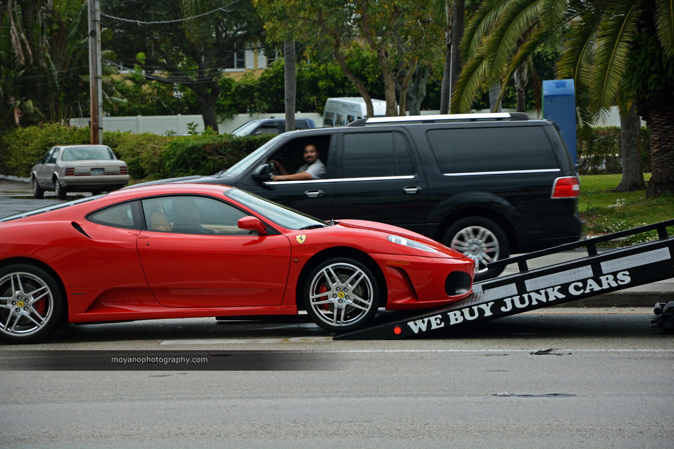 Don't know what is more AWESOME, the "WE BUY JUNK CARS" or the Driver PASSING BY and smiling, or the nose of the car getting painfuly scratched ! I love this moment.