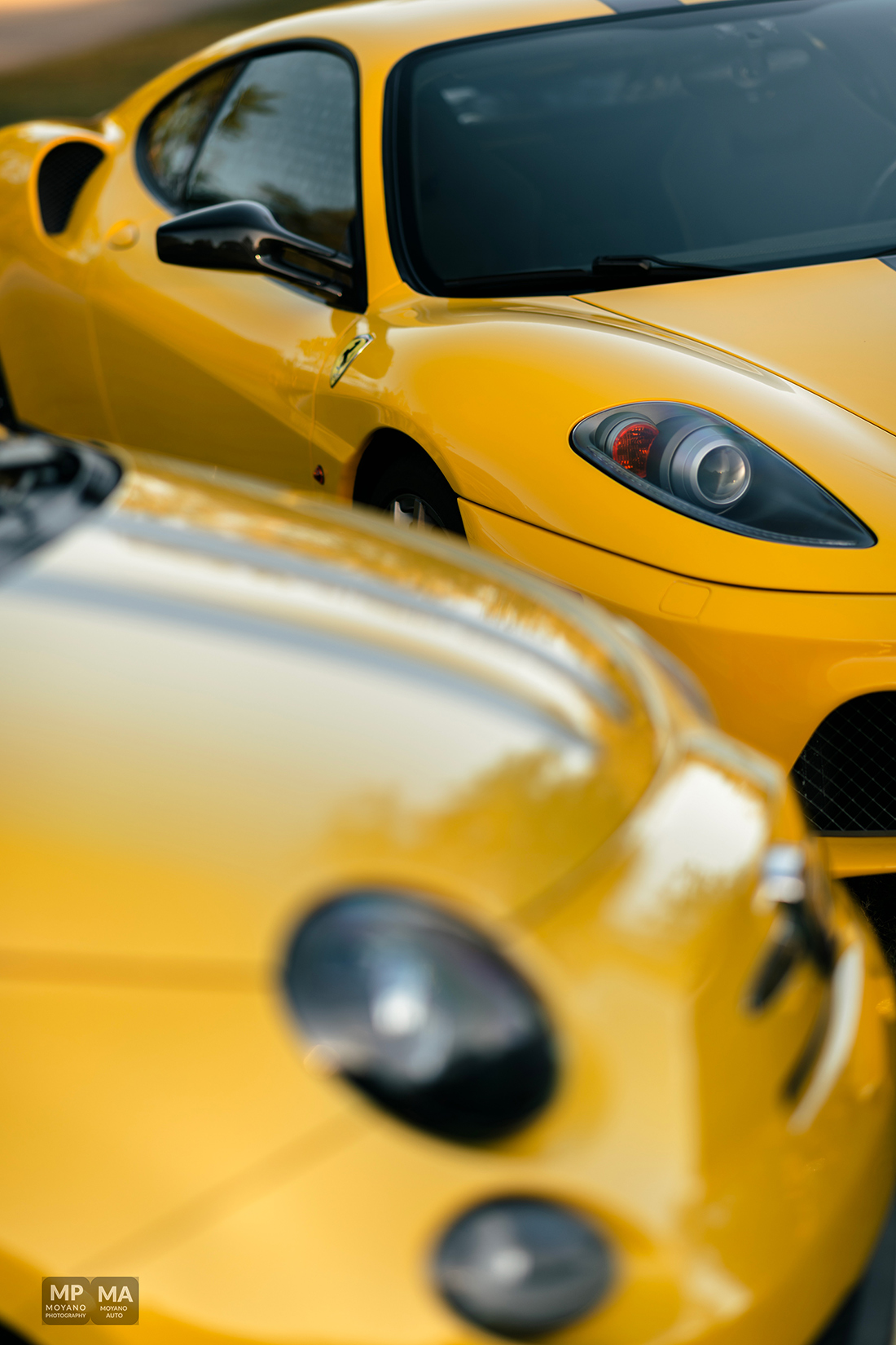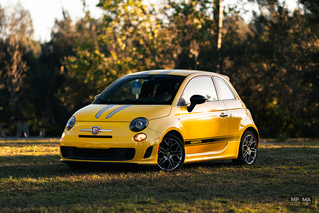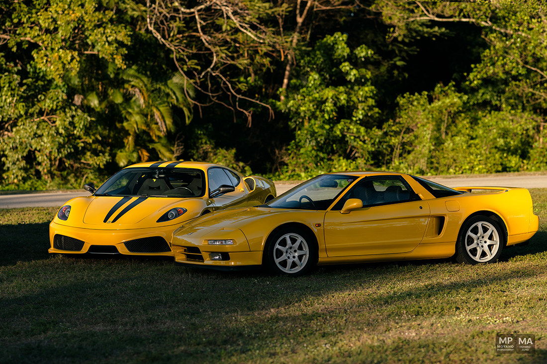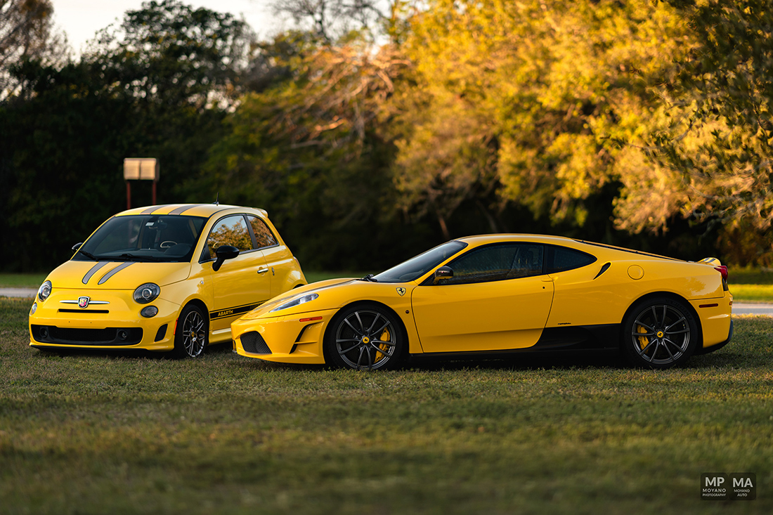 This was a such beautiful sunset! Not everyday we have the HONOR to photograph some pretty awesome and historical cars such these! We have here an epic orange sunset with the trees and a 430 Scuderia!! A Fiat 500 Abarth (Giallo Modena), Honda NSX (Indy Yellow Pearl) … it was quite the spectacle and the park stopped to watch us shoot!