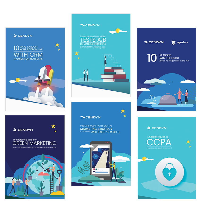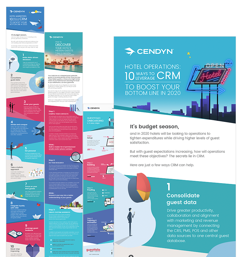 We produced over 50 guides! White papers and Guides are a lot of fun, these covers were designed making sure all the elements are unique, so what to looks like ONE GRAPHIC, is actually a combination of many. That makes each cover unique and exclusive for the client. These were very successful for Cendyn.
